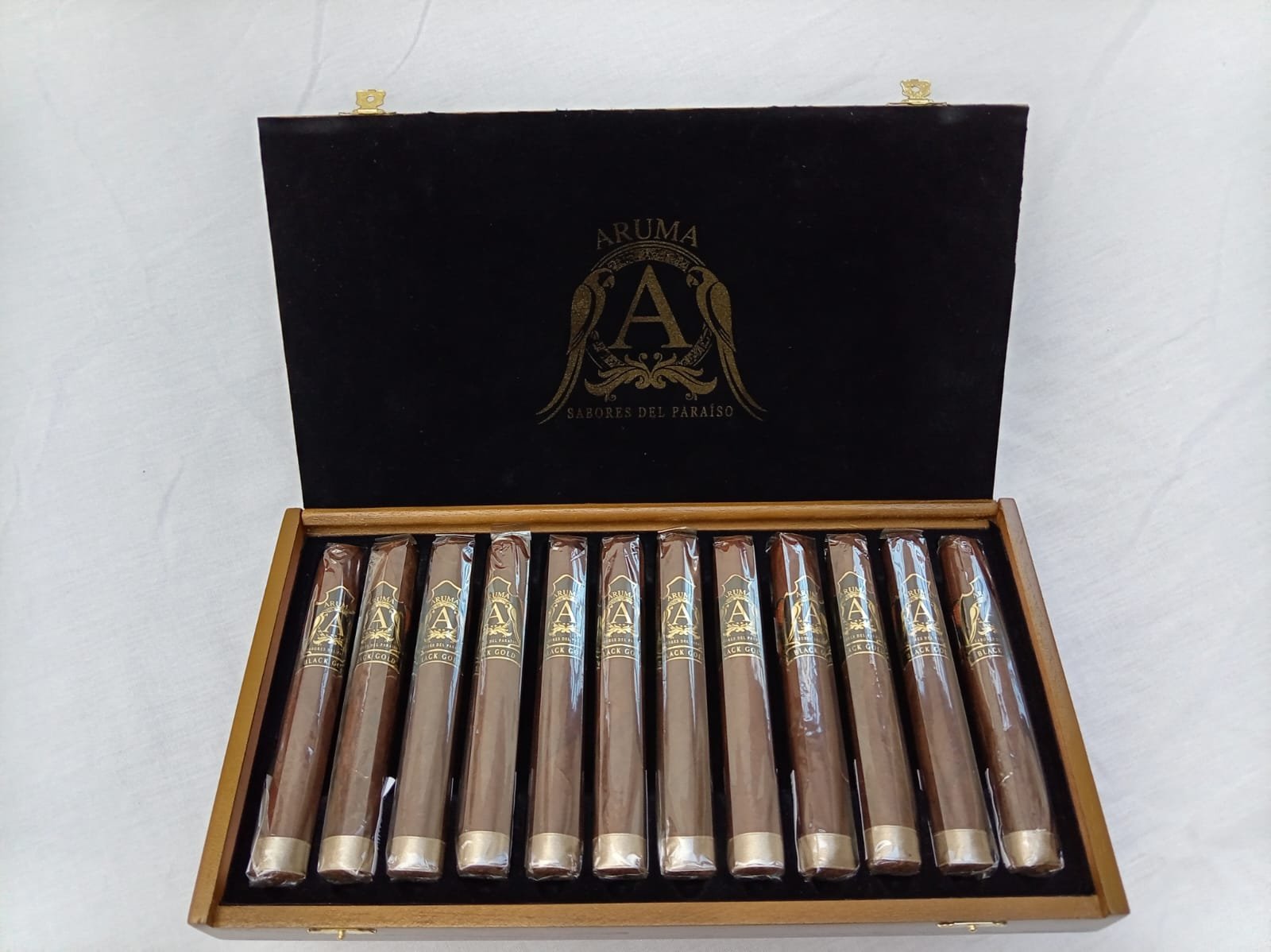The Aruma Black Gold is a formidable creation, a true testament to the mastery achieved at the ARUMA CIGARS factory. Crafted by master blender Wilmer Cárcamo, this blend is a full-bodied commitment to impeccable craftsmanship and deep-seated tradition. It presents an intensely complex and highly layered smoke, tailored explicitly for the experienced, discerning palate.